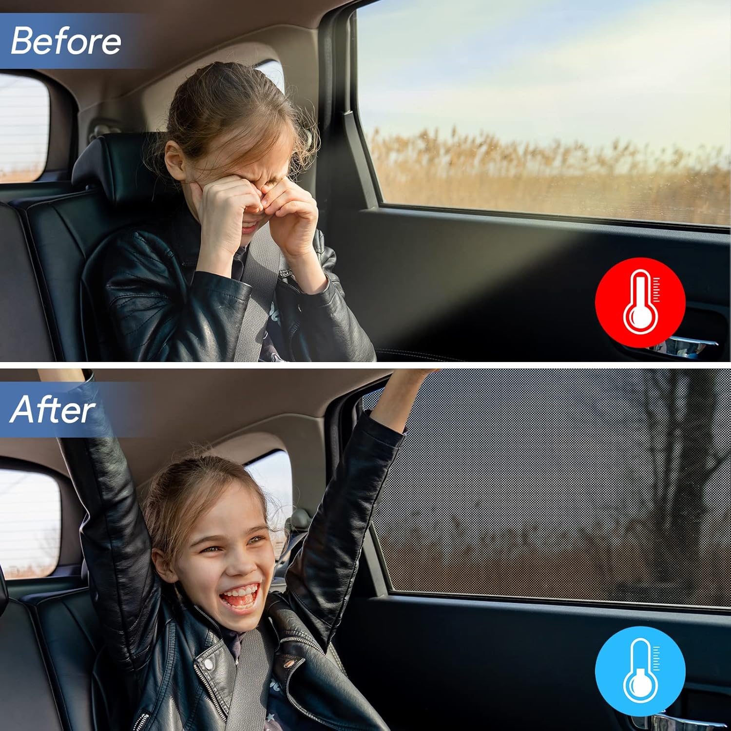 특히 이 제품은 외부 창틀을 감싸는 방식으로 설치되기 때문에 창문을 자유롭게 열고 닫을 수 있는 점이 큰 장점입니다. ‘햇빛 가리개를 설치하면 창문은 못 열겠지…’ 하는 고민은 이제 그만! 바람을 즐기면서도 햇살은 차단할 수 있어 답답함 없이 편안한 주행이 가능합니다.